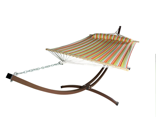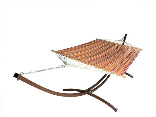 15 Ft. Indoor/Outdoor Brown Steel Arc Hammock Stand & Quilted Hammock Bed.