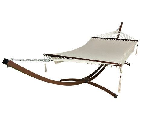 15 Ft. Indoor/Outdoor Brown Steel Arc Hammock Stand w/Hand Woven Bohemian Chic Rope Hammock Bed.