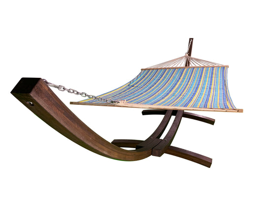 14 Ft. Coffee Stain Wooden Arc Hammock Stand & Quilted Hammock Bed.