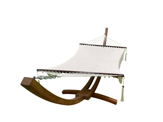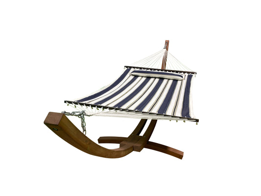 14 Ft. Teak Stain Wooden Arc Hammock Stand & Quilted Hammock Bed.