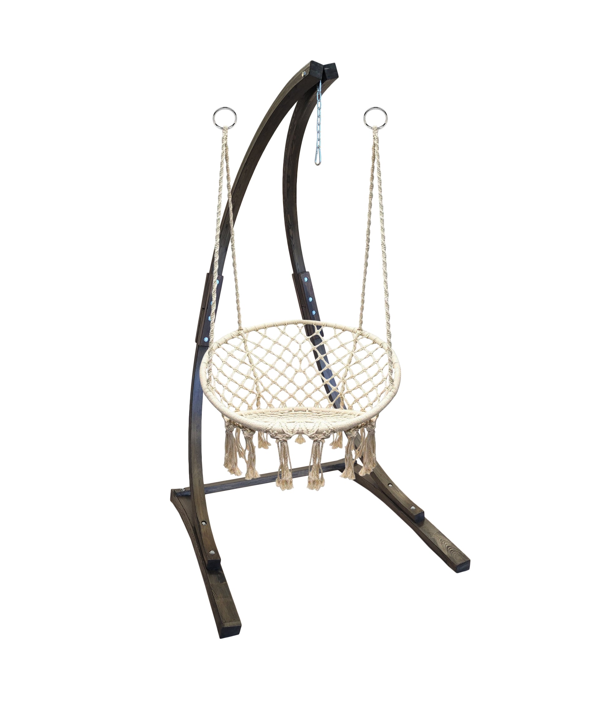 Enhance your relaxation space with the Petra Leisure 7 Ft Coffee Stain Wooden Arc Hammock Chair Stand. Designed for strength, beauty, and versatility, this water-treated wooden stand brings a warm, elegant touch to any indoor or outdoor setting.