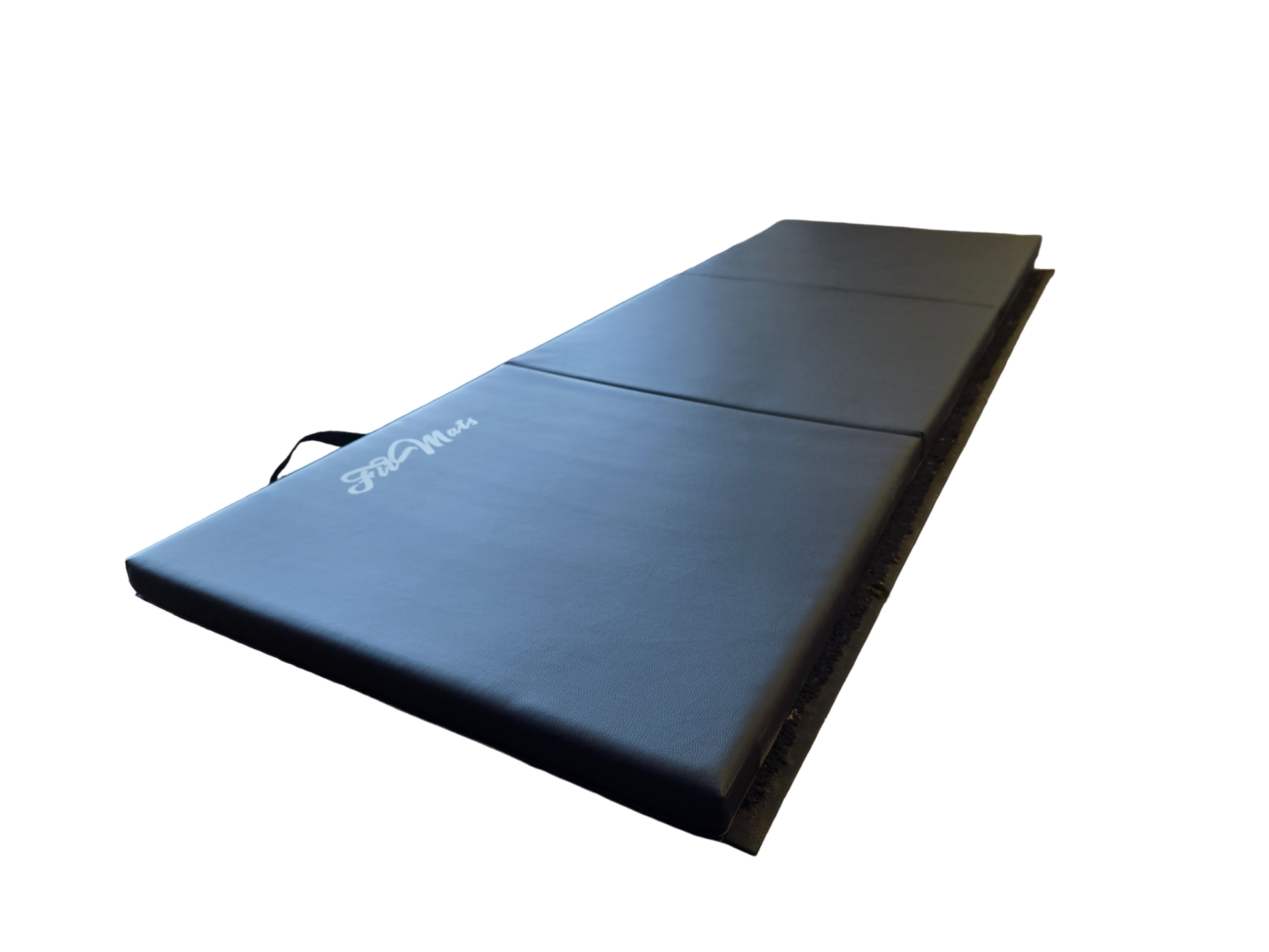 The FitMats 3-Panel Exercise Mat features a convenient tri-fold system that makes it easy to fold, carry, and store. Its compact design saves space in your home gym while maintaining a full-length surface when unfolded for a wide range of exercises.