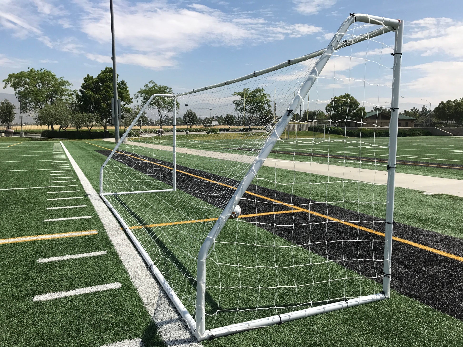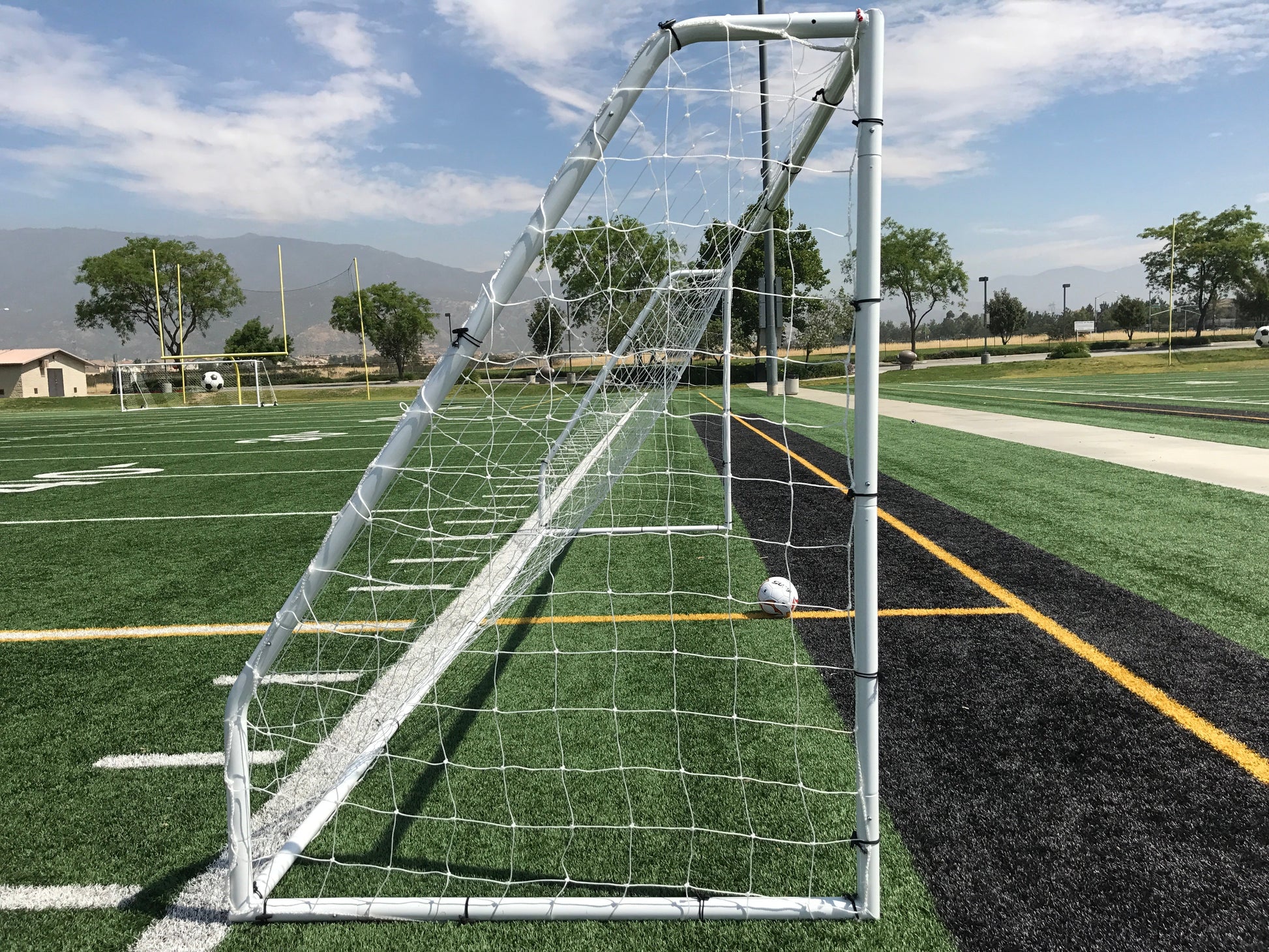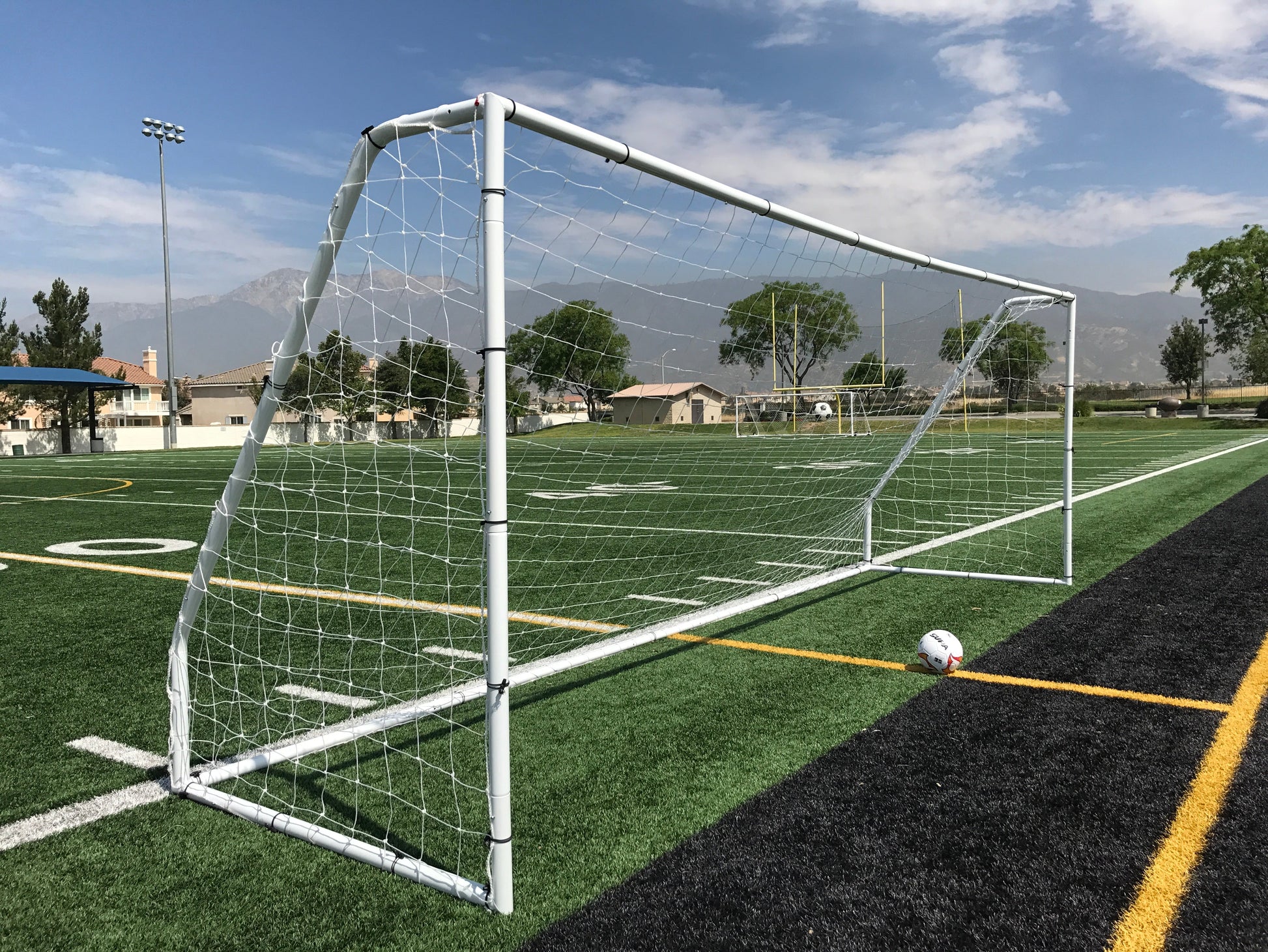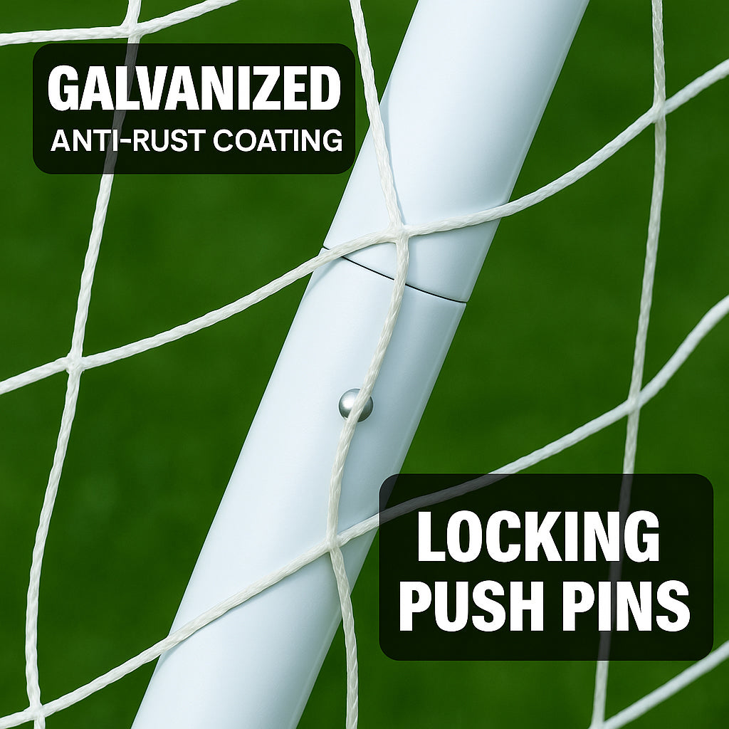 1 Premium Quality Steel Tube Soccer Goal w/ Premium Weatherproof 4MM Net, 40 Elastic Clasps, 40 Re-Usable Push Mount Ties & 10 Ground Stakes. With its Industrial Grade 50MM powder coated/corrosion resistant dipped galvanized steel tubing and durable all-weather design this soccer goal is a must have for your soccer club, practice teams or school.