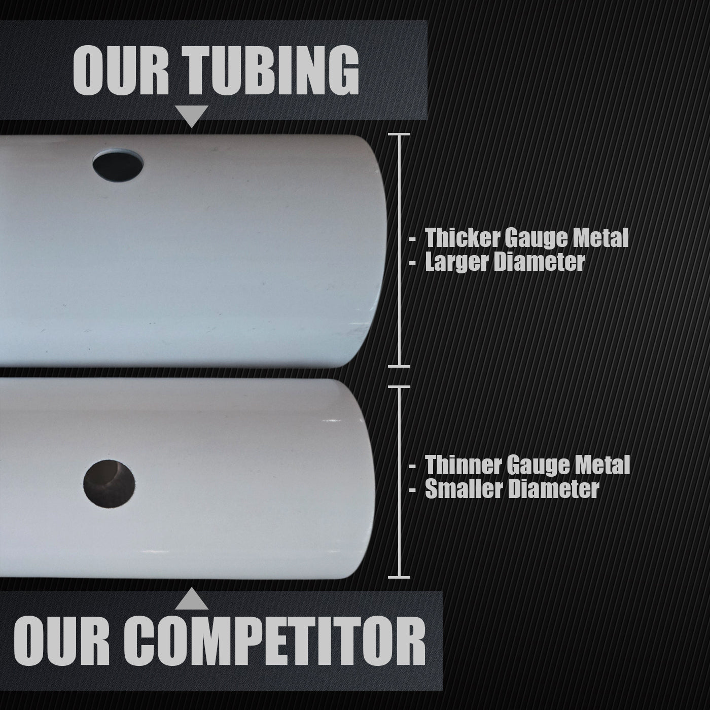 - Heavy Duty Frame w/2" Diameter Powder Coated Galvanized Steel Frame.